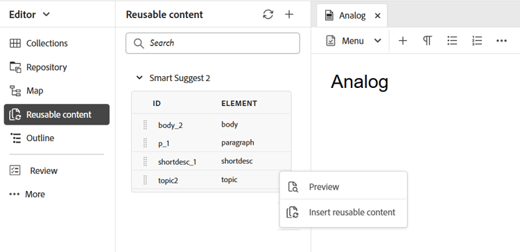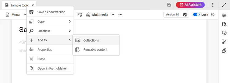 - Nieuw: Creeer een nieuw onderwerp DITA, kaart DITA, of een omslag.
