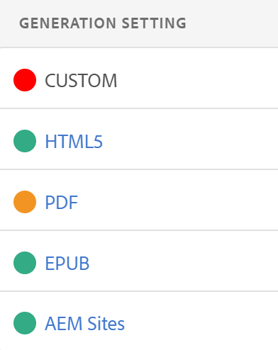De Generatie die kolom van plaatst Gegenereerde Output toont de kleur om een visuele richtsnoer over het succes of de mislukking van de outputgeneratie voor verschillende output vooraf instelt te geven.