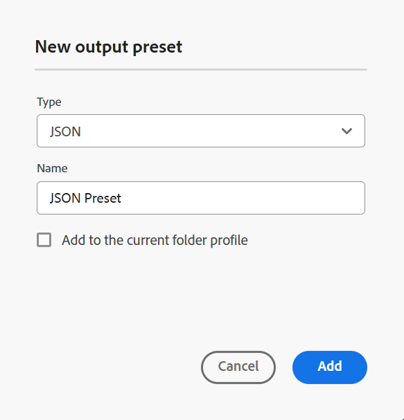 De volgende opties zijn beschikbaar voor de JSON-voorinstelling: