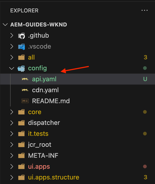 api.yaml-bestand in de mapconfigof maak dit. In mijn geval, wordt het Project van de Plaatsen van AEM WKND gebruikt om het op OpenAPI-Gebaseerde de opstellingsproces van AEM aan te tonen APIs.