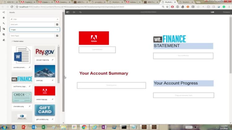 In dit deel voegen we afbeeldingen en tekstinhoud toe aan de doelgebieden die zijn gedefinieerd in de indeling (xdp).