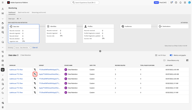 Om de gegevens te controleren die in een specifieke dataflow worden opgenomen, selecteer het filterpictogram