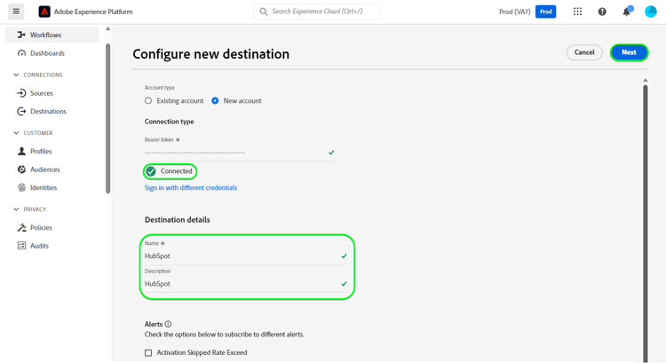 Houd rekening met de volgende voorwaarden om gegevens van Experience Platform naar uw HubSpot -account te exporteren: