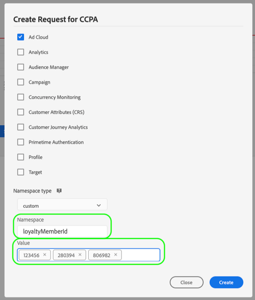 Selecteer onder Namespace type het juiste naamruimtetype voor de klant-id's die naar Privacy Service worden verzonden.