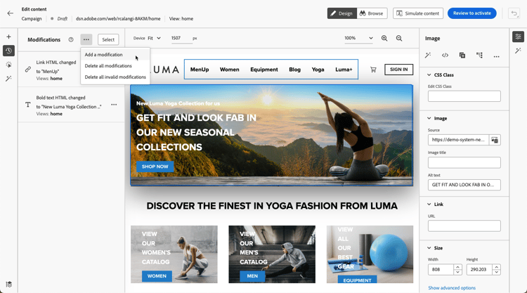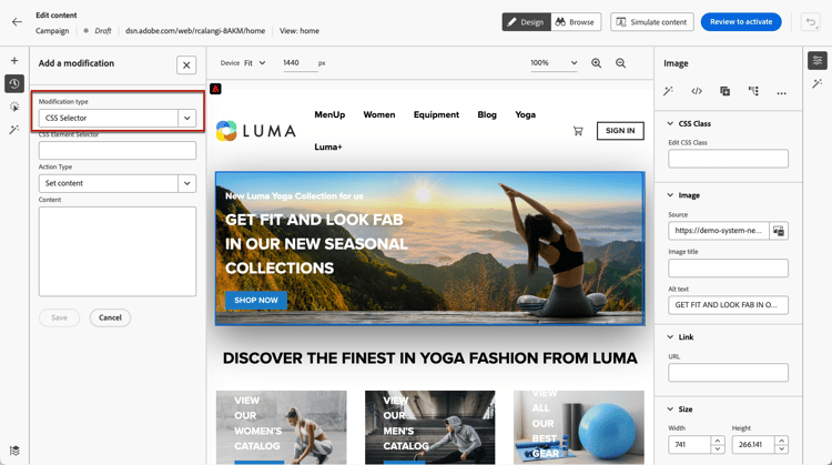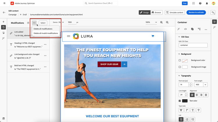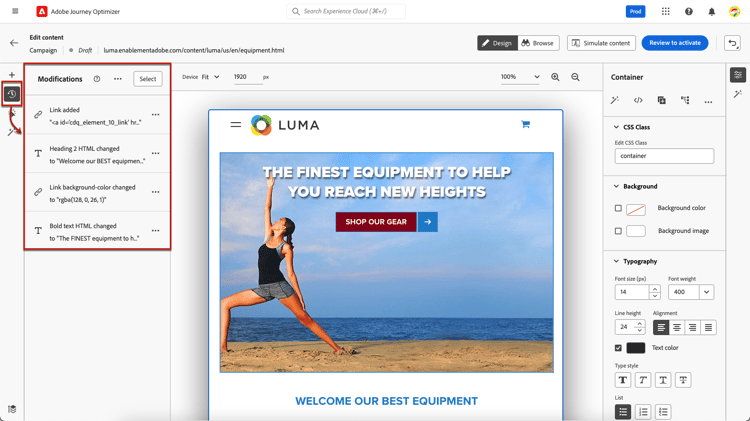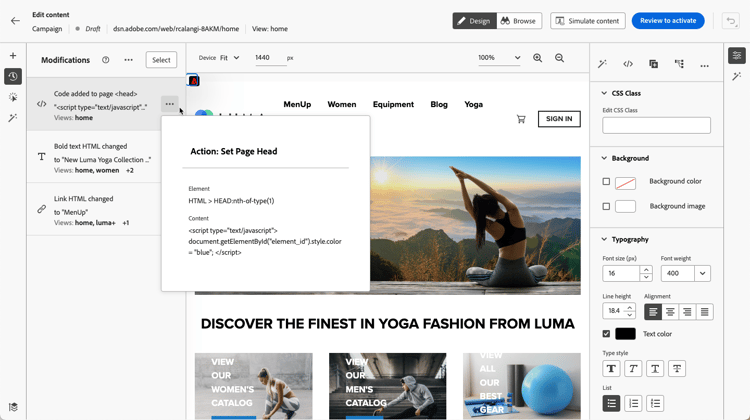 Wanneer u een pagina bewerkt met de webontwerper, kunt u nieuwe wijzigingen rechtstreeks vanuit het deelvenster Modifications toevoegen, zonder dat u een component hoeft te selecteren en te bewerken in de interface van de webontwerper. Voer de onderstaande stappen uit.