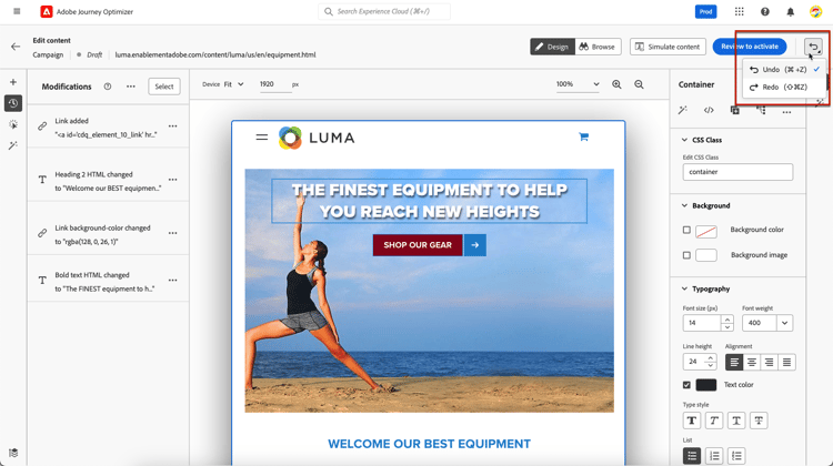 U kunt de personalisatie-editor van Journey Optimizer gebruiken met al zijn personalisatie- en ontwerpmogelijkheden. Meer informatie