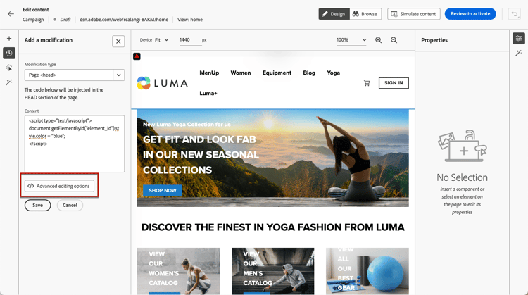 Klik op de knop Advanced editing options. De verpersoonlijkingsredacteur opent.