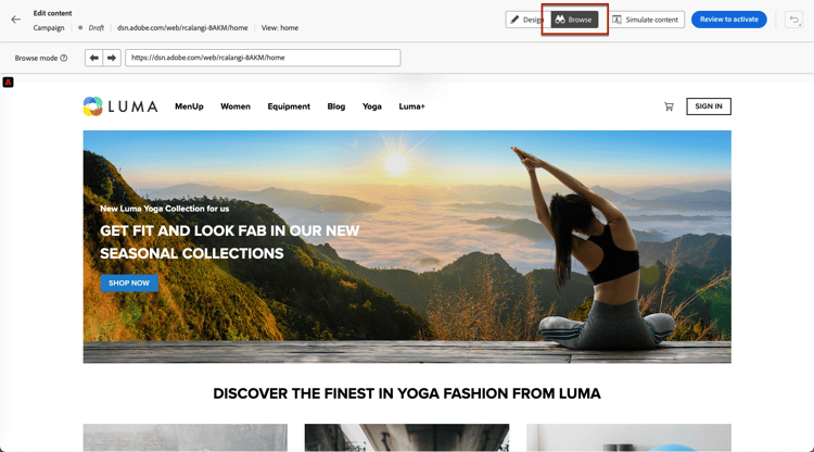 Wisselen naar de modus Browse om te controleren of de wijzigingen zijn toegepast op de gewenste pagina's.