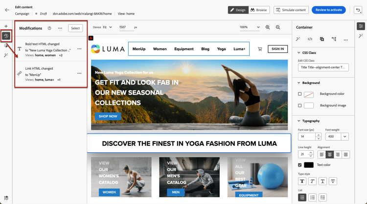 Selecteer het pictogram Modifications om het corresponderende venster links weer te geven.