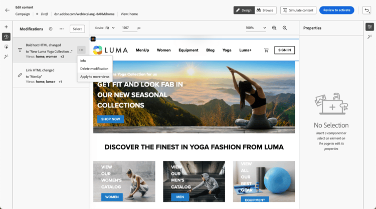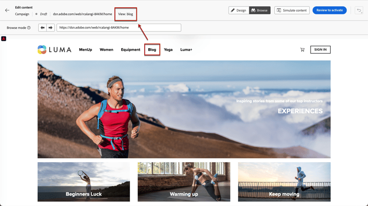 Zodra de opstelling van SPAs in de implementatie van SDK van het Web van Adobe Experience Platform wordt gedaan, moet u door alle meningen van uw website navigeren die u wijzigingen wilt toepassen op. Voer de onderstaande stappen uit.