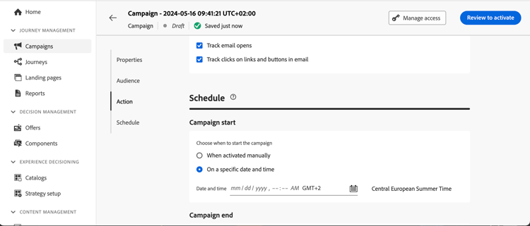 Voordat u uw reis of campagne activeert, moet u ervoor zorgen dat de uitvoering ervan ten minste 10 minuten in de toekomst wordt gepland.