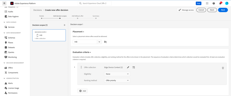 - vorm een besluit : Creeer een nieuw besluit dat hefboomwerkingen de Motor van het Besluit van de Aanbieding om de beste aanbieding te kiezen om aan gebruikers voor te stellen die op hun apparatentype worden gebaseerd.