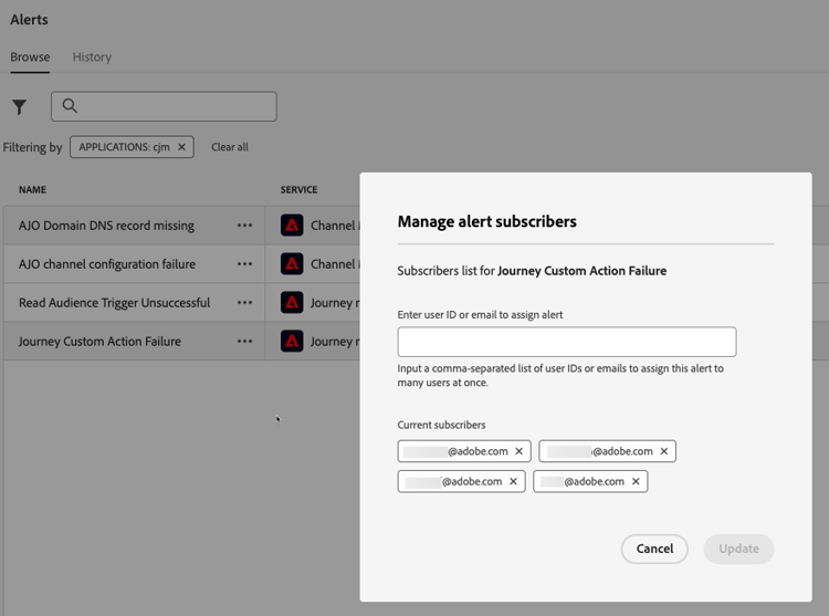 Als u meer abonnees wilt toevoegen, voert u hun e-mail gescheiden door een komma in en selecteert u Update .