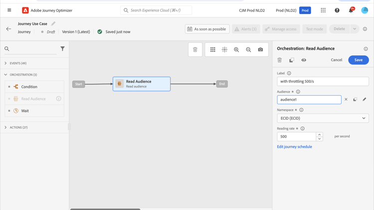 Voor externe gegevensbronnen, kunt u een het begrenzen op eindpuntniveau bepalen om die externe systemen te vermijden overweldigend door Journey Optimizer Capping APIs. Alle resterende aanvragen nadat de limiet is bereikt, worden echter genegeerd. In deze sectie vindt u tijdelijke oplossingen waarmee u de doorvoer kunt optimaliseren.