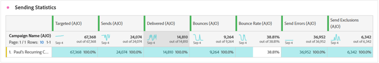 De tabel Sending Statistics bevat een uitgebreid overzicht van essentiële gegevens over e-mails in uw campagnes. Het bevat belangrijke metriek, zoals de interactie met uw e-mails en het aantal e-mails dat met succes is bezorgd. Het biedt waardevolle inzichten in de effectiviteit en het bereik van uw e-mails en campagnes.