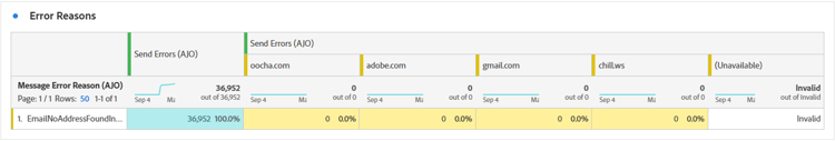 De tabel Error Reasons biedt zichtbaarheid in de specifieke fouten die tijdens het verzendproces zijn opgetreden en biedt waardevolle informatie over de aard en het optreden van fouten.