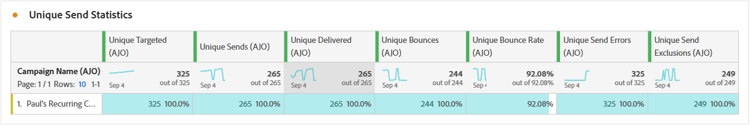 De tabel van Unique Sending Statistics bevat een gedetailleerd overzicht van unieke e-mailprestatiegegevens in uw campagnes. Het richt zich op individuele profielen, zoals die uniek gericht, geleverd aan, geprononceerd, of uitgesloten-verstrekt diepgaande inzichten in hoe uw e-mails uw publiek bereiken en betreden.