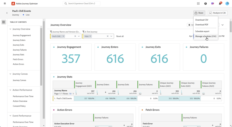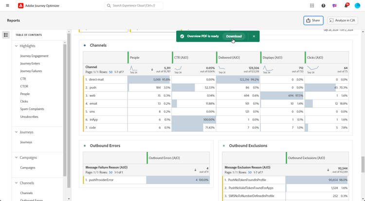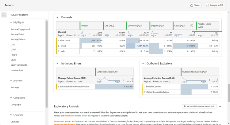 Je hebt nu de mogelijkheid om je Journey Optimizer-rapporten te verbeteren met behulp van Customer Journey Analytics-sjablonen. Leer meer over het malplaatje van Customer Journey Analytics