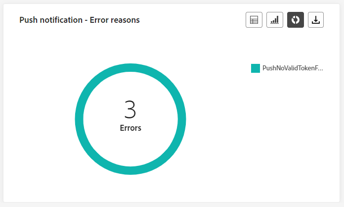 De Error Reasons -tabel en -grafieken bieden u de mogelijkheid om de specifieke fouten te identificeren die zijn opgetreden tijdens het verzenden van uw pushberichten en bieden gedetailleerde inzichten in problemen die zich de afgelopen 24 uur hebben voorgedaan.
