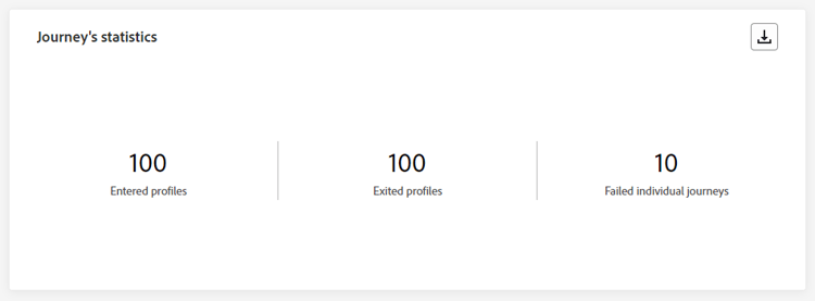 De Journey Statistics Belangrijkste Indicatoren van Prestaties (KPIs) functioneren als volledig omringend dashboard, dat een analyse van essentiële metriek verstrekt verbonden aan uw reis in de afgelopen 24 uren. Dit omvat details zoals het aantal ingegane profielen en gevallen van mislukte individuele reizen, die een uitvoerig inzicht in de doeltreffendheid van uw reis en niveau van betrokkenheid aanbieden.
