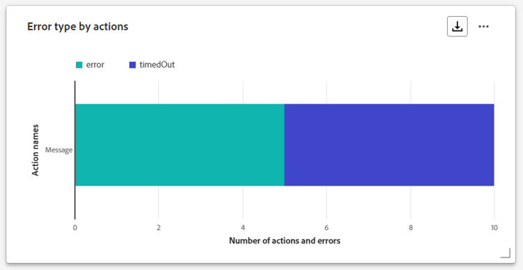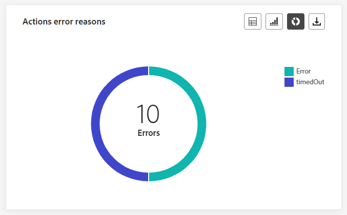 De tabel en grafiek van Error type by actions bieden een uitgebreid overzicht van de fouten die zijn opgetreden bij elke uitvoering van uw acties in de afgelopen 24 uur.