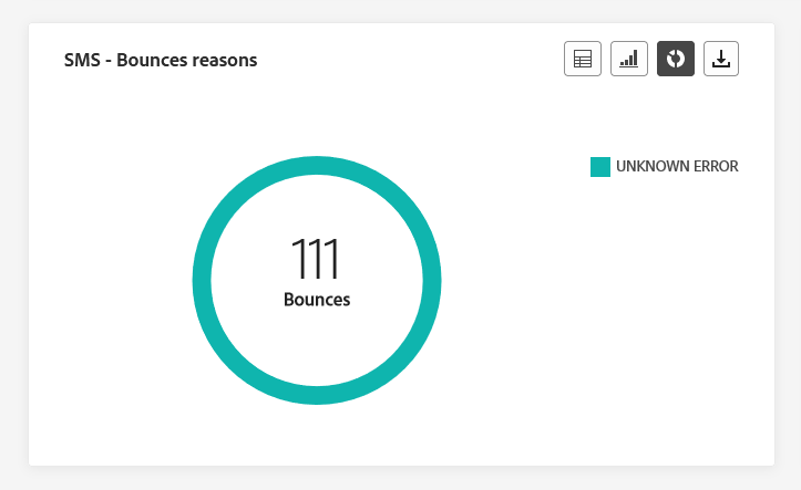 De grafieken en tabel van SMS - Bounces reasons bieden een uitgebreid overzicht van gegevens met betrekking tot verzonden SMS-berichten, waarmee u in de afgelopen 24 uur waardevolle inzichten kunt opmaken van de specifieke redenen achter sms-berichten.