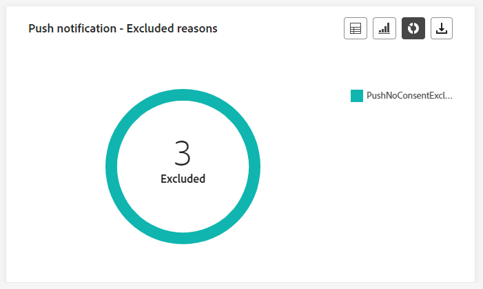 In de grafieken en tabel van Excluded Reasons ziet u de verschillende redenen waarom gebruikersprofielen, die zijn uitgesloten van de doelprofielen, uw pushberichten niet binnen 24 uur konden ontvangen.