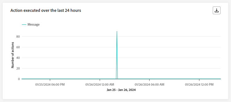 De Action executed over the last 24 hours -widget vertegenwoordigt de meest succesvolle actie die is uitgevoerd toen uw handelingen werden geactiveerd.