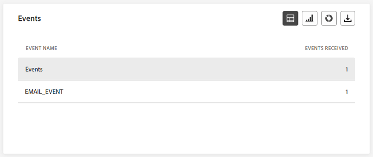Met de widget Events kunt u zien welke van uw gebeurtenissen is uitgevoerd via een overzichtsnummer, een grafiek en een tabel.