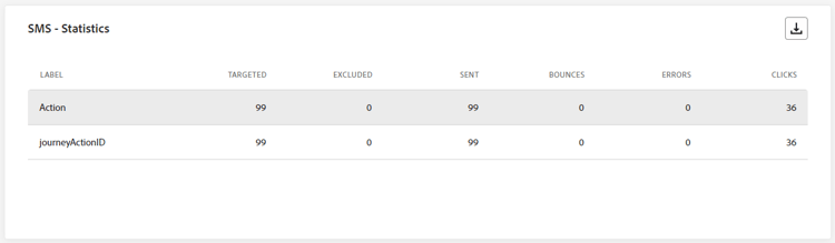 De tabel SMS - Statistics bevat een beknopte samenvatting van essentiële gegevens met betrekking tot uw SMS-berichten, die belangrijke metriek omvat, zoals het aantal gerichte berichten en het aantal berichten dat succesvol is bezorgd vanaf de laatste 24 uur.