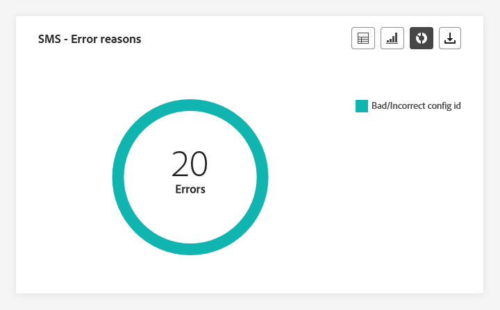 Met de grafieken en tabel van SMS - Error Reasons kunt u de specifieke fouten identificeren die zijn opgetreden tijdens het verzenden van uw SMS-berichten. Zo kunt u een grondige analyse maken van alle problemen die zich in de afgelopen 24 uur hebben voorgedaan.
