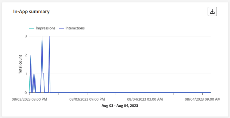 De grafiek van In-app summary illustreert de voortgang van uw in-app-indrukkingen en interacties in de afgelopen 24 uur en geeft een uitgebreid overzicht van de prestaties van uw In-app-berichten.