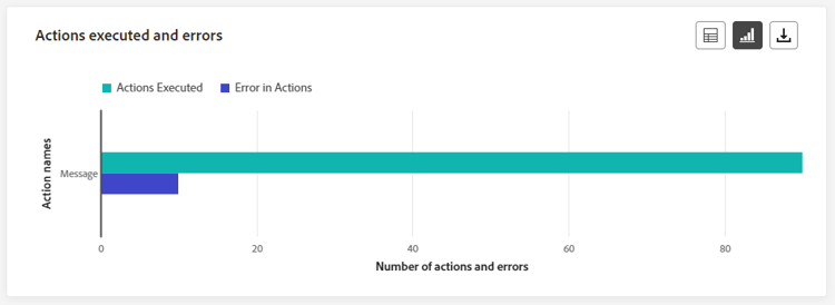 De Actions executed and errors -widget vertegenwoordigt de meest succesvolle actie en fouten die zijn opgetreden toen uw acties in de afgelopen 24 uur werden geactiveerd.