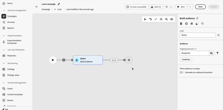 In Geordende campagnes, kunt u een kanaalactiviteit aan de Transactionele categorie nu plaatsen. Dit past transactiekanaalconfiguraties op die activiteit toe en is nuttig wanneer de bedrijfsregels niet zouden moeten van toepassing zijn of wanneer de opt-in van klanten niet wordt vereist.