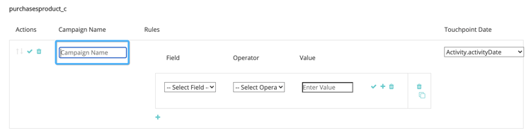 Sommige activiteitentypes verstrekken ons van identiteitskaart van het Programma en de Naam van het Programma, zodat is het gemakkelijk om dat in de Campagne ID en de Naam van de Campagne op Buyer Touchpoint in kaart te brengen. Voor anderen is er geen programmakoppeling, dus voor een deel van de regeldefinitie moet u een Marketo Measure campagnenaam maken. Hieronder staan lijsten van elke categorie: