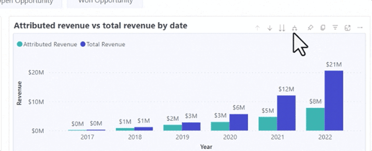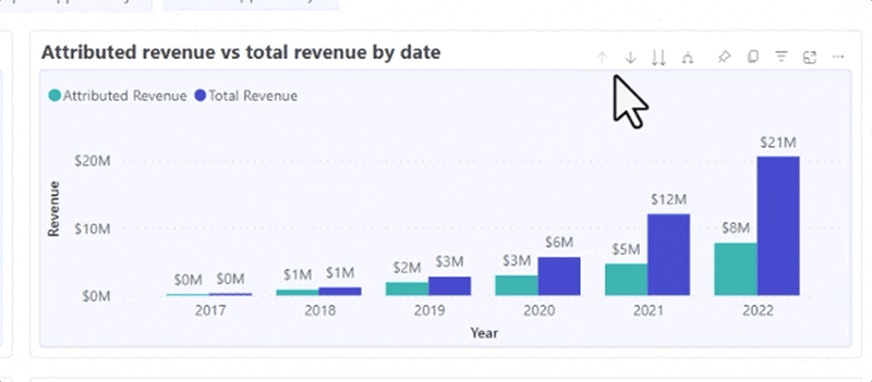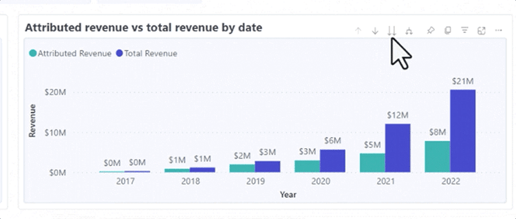 - Houd de muisaanwijzer boven een visueel element om te bepalen of het een hiërarchie heeft. De aanwezigheid van opties voor boorbesturing op de actiebalk geeft dit aan.