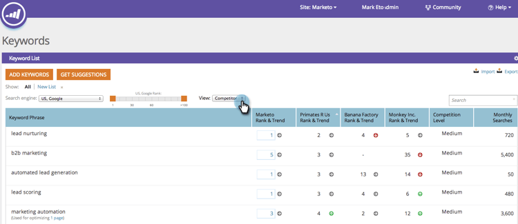 De Keywords sectie zal u tonen hoe succesvol uw plaats in het bereiken van dit is en hoe u tot uw concurrentie stapelt.