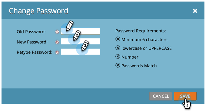 Voer het oude wachtwoord en het nieuwe wachtwoord in en klik op Save .