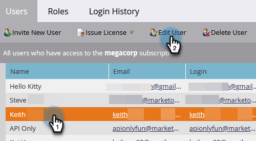 Selecteer de gebruiker aan wie u een andere rol wilt toewijzen en klik op Edit User .