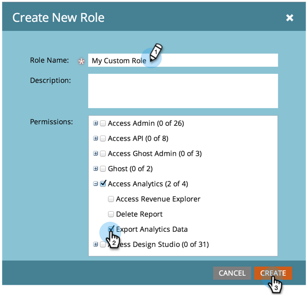Geef uw nieuwe rol een naam, controleer alle machtigingen die u aan gebruikers die aan de rol zijn gekoppeld, wilt verlenen en klik op Create .