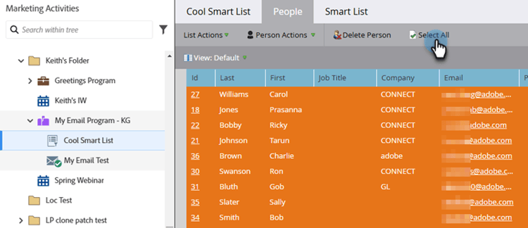 note note NOTE Als de resultaten zich uitstrekken over meerdere pagina's, worden door te klikken op Select All alle personen op alle pagina's geselecteerd. -