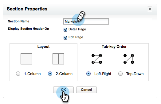 note note NOTE Deze velden moeten in de paginalay-out staan, zodat Marketo ze kan lezen/schrijven. note tip TIP Maak twee kolommen voor de velden door naar de rechterkant van de pagina te slepen. U kunt velden van de ene naar de andere zijde verplaatsen om de kolomlengte in evenwicht te brengen. -