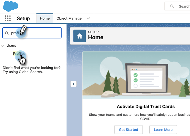 Typ "profielen" in de zoekbalk Nav en klik op de koppeling Profiles .
