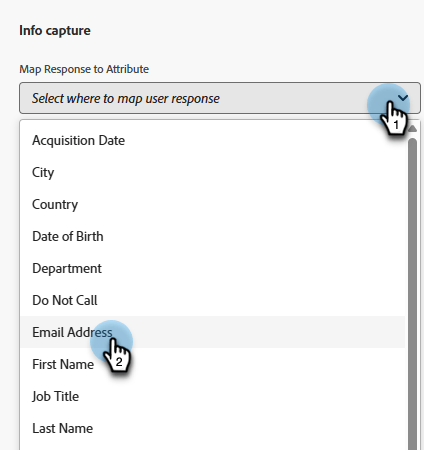 Onder "ja"reactie, sleep over de kaart van de Vangst van Info zodat kunt u e-mail van de bezoeker verzamelen.