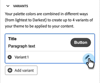 Als u een variant wilt bewerken, klikt u op het bijbehorende potloodpictogram.