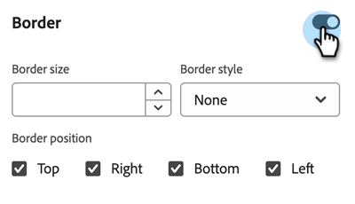 Schakel de rand in op AAN om de opties voor het instellen van grootte, stijl en positie weer te geven.