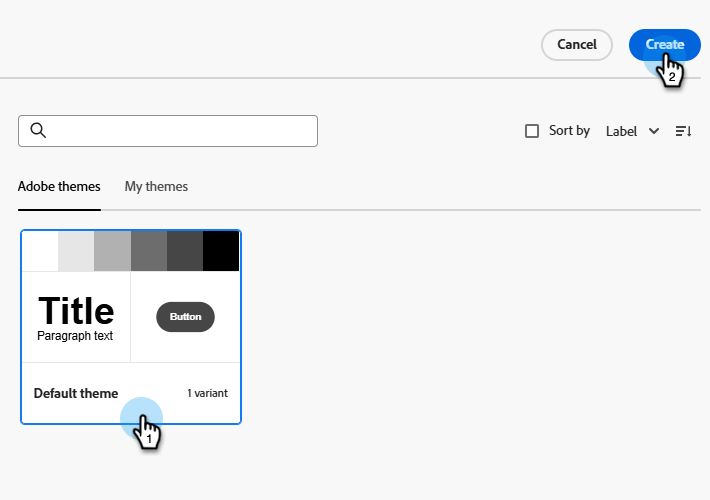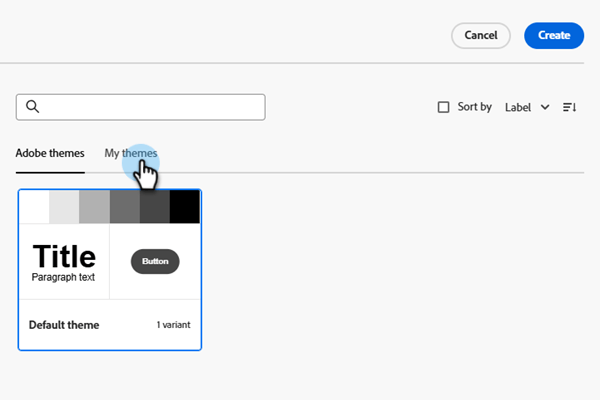 Maak een keuze uit Adobe-thema's of -thema's die u al hebt gemaakt.
