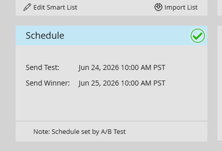 note note NOTE Het plannen van een test A/B vormt ook de definitieve verzenddatum of het rapport verzendt datum. Ervan uitgaande dat u al uw publiek hebt gedefinieerd en een e-mail hebt gekozen, bestaat de enige resterende stap uit het goedkeuren van het programma.