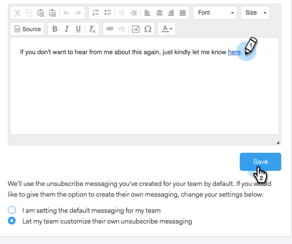 Wij hebben teams altijd toegestaan om hun unsubscribe verbindingsoverseinen aan te passen, maar nu kunnen beheerders het unsubscribe verbindingsoverseinen voor hun volledig team plaatsen om verenigbaar overseinen te verzekeren.