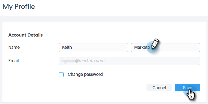 De pagina Mijn profiel wordt standaard geopend. Als u uw naam wilt bijwerken, typt u de wijzigingen en klikt u op Save .